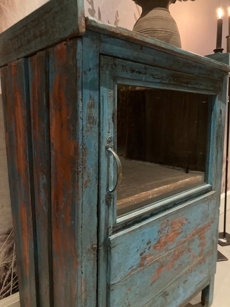 Helaas, je kan niet alles zelf houden. Maar op deze beauty word je toch spontaan verliefd! Deze vitrinekast komt uit India. Wat hem zo leuk maakt, zijn de glazen raampjes aan de voorkant. Met de groene kleur kan je verschillende kanten op. Kies jij voor een landelijke sfeer in huis of toch liever een Ibiza style? Heb jij een mooi plekje voor deze prachtige vitrinekast? Laat het gerust weten!