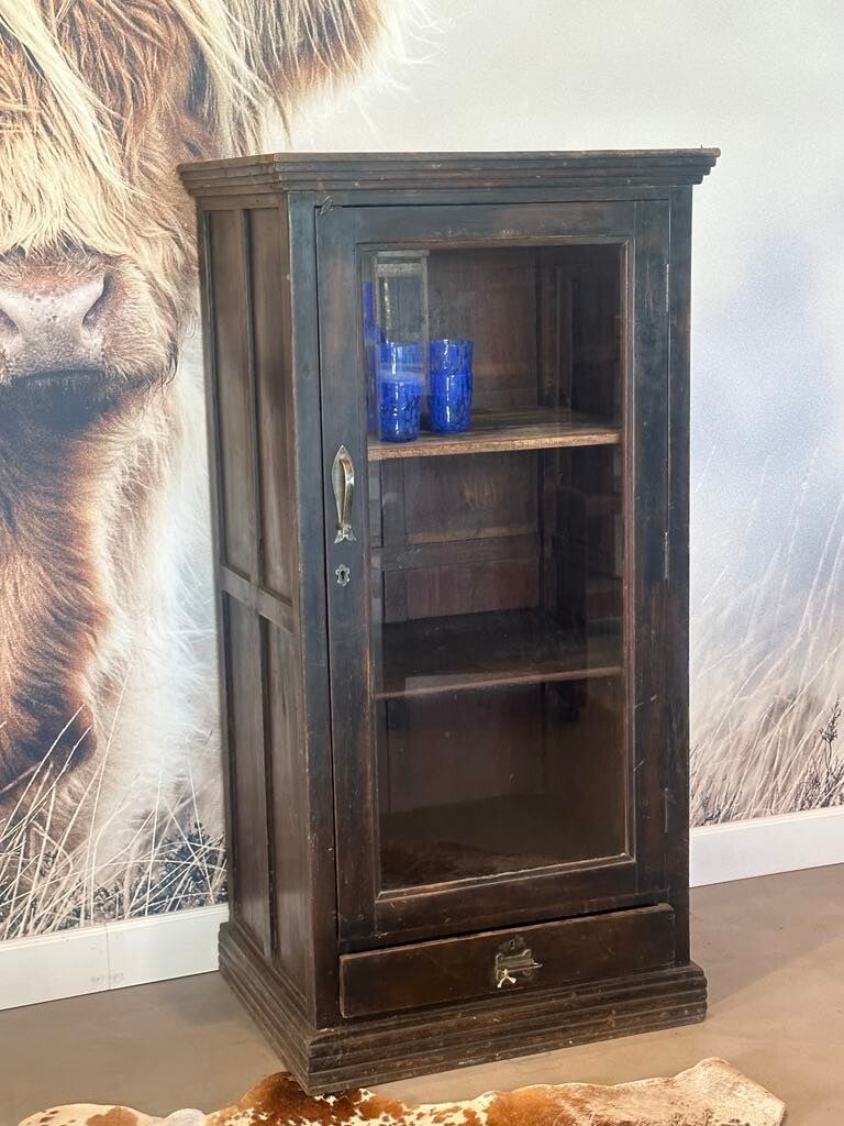 Helaas, je kan niet alles zelf houden. Maar op deze beauty word je toch spontaan verliefd! Deze vitrinekast komt uit India. Wat hem zo leuk maakt, is de glazendeur aan de voorkant. Met deze bruine kleur kan je verschillende kanten op. Kies jij voor een landelijke sfeer in huis of toch liever een Ibiza style? Heb jij een mooi plekje voor deze prachtige vitrinekast? Laat het gerust weten!