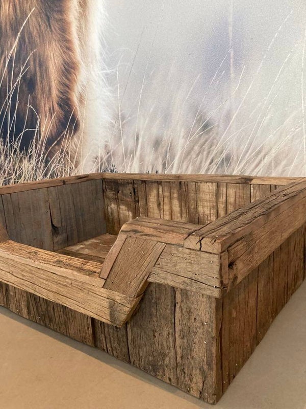 Als je op zoek bent naar een uniek item voor je trouwe viervoeter, zoek dan niet verder! Onze handgemaakte houten hondenmand, gemaakt van truckbody hout, geeft een landelijke uitstraling aan je interieur. Ruim en comfortabel, het is de perfecte rustplek voor je hond. De mand wordt geleverd zonder kussen.