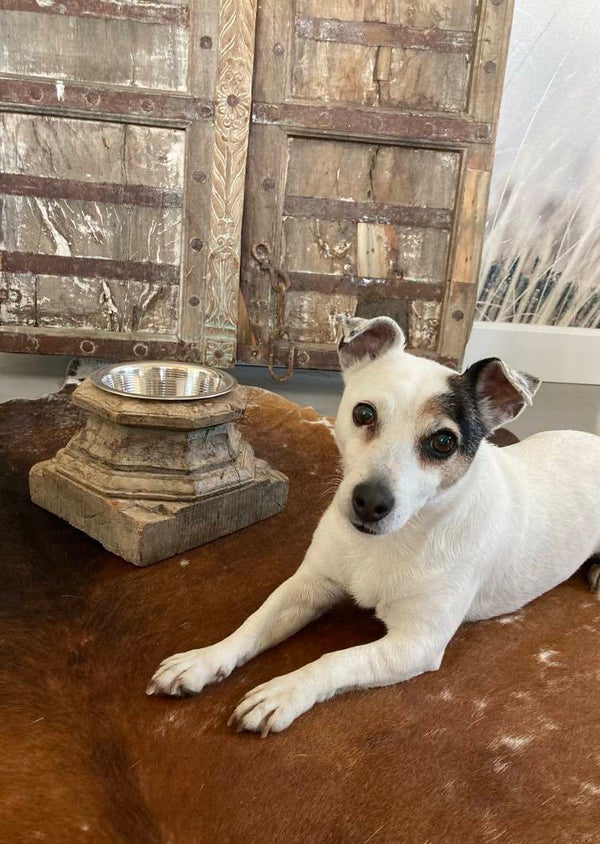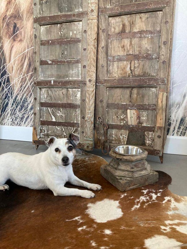 Ontdek de unieke charme van onze hondenvoerbak, gemaakt van een authentieke poer uit India! Elk stuk is met zorg vervaardigd en draagt het erfgoed van Indiase vakmanschap. De voerbak is voorzien van een duurzame metalen bak, ideaal voor het serveren van het voer van je trouwe viervoeter. Dit is een werkelijk uniek item dat zowel functionaliteit als esthetiek biedt. Voeg een vleugje exotische schoonheid toe aan de eetgewoonten van je hond met deze bijzondere hondenvoerbak, een erfstuk om te koesteren.