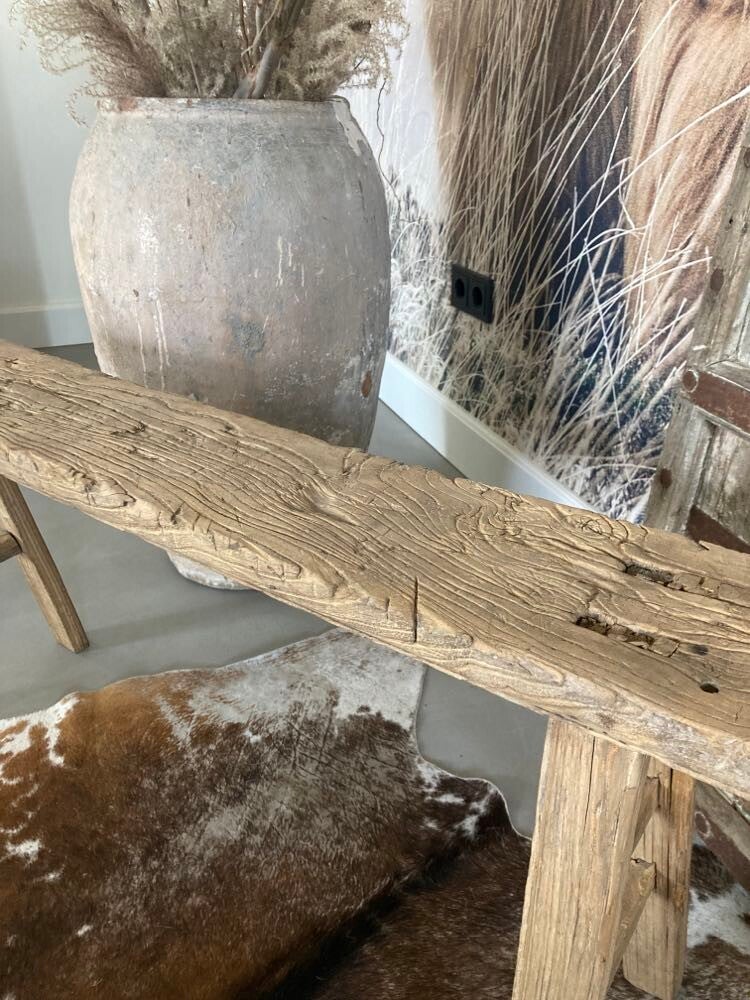 Ontdek de betovering van onze unieke, met de hand vervaardigde Chinese houten bankjes! Met hun doorleefde design en tijdloze naturel kleur brengen deze bankjes moeiteloos karakter in elke ruimte. Elk detail is met vakmanschap gemaakt, wat resulteert in niet alleen comfort, maar ook een vleugje rustieke elegantie. Perfect voor gebruik in de tuin, woonkamer, hal of als een uniek accentstuk in je interieur. Aangezien deze bankjes met de hand zijn gemaakt van oud hout, is elk bankje uniek. Houd er daarom rekening mee dat het geleverde item kan afwijken van de foto.