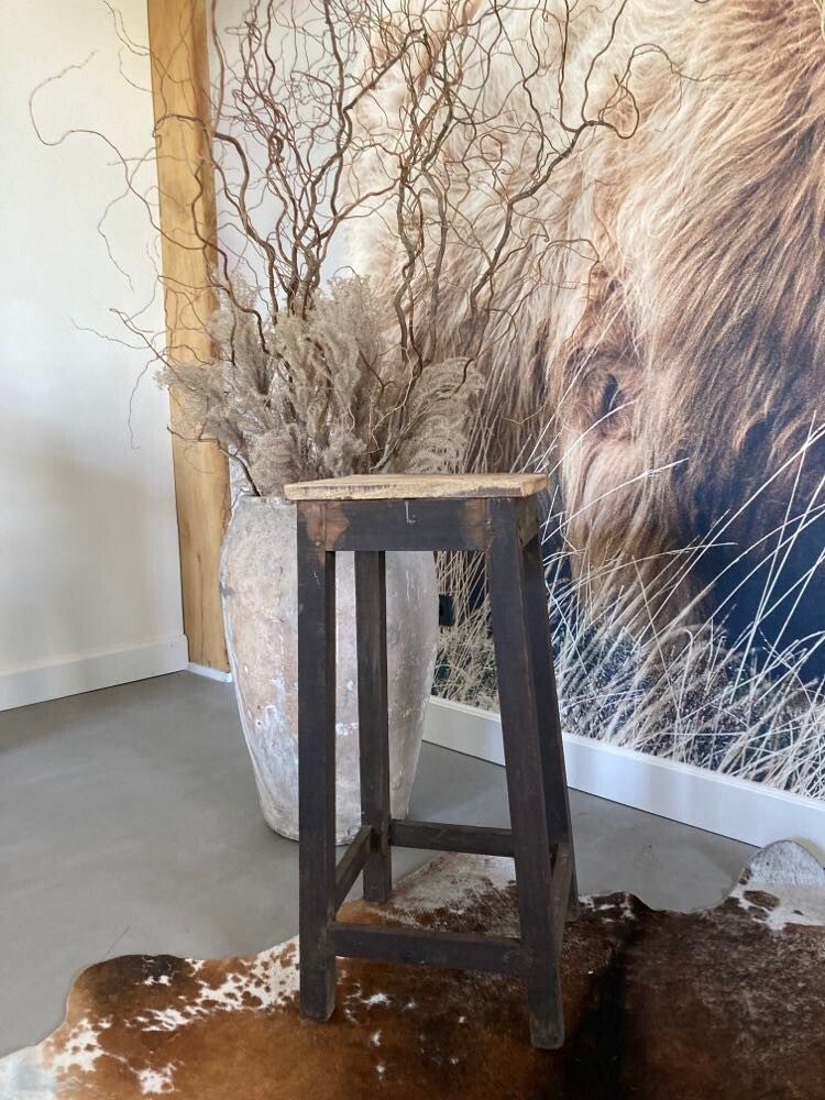 Ervaar de betoverende aantrekkingskracht van onze prachtige hoge brocante kruk! Met zijn schitterende doorleefde uitstraling voegt deze kruk een vleugje rustieke elegantie toe aan elke ruimte. Of je nu extra zitplekken wilt creëren, een handige bijzettafel zoekt of een charmante plantenstandaard nodig hebt, deze veelzijdige kruk biedt eindeloze mogelijkheden.