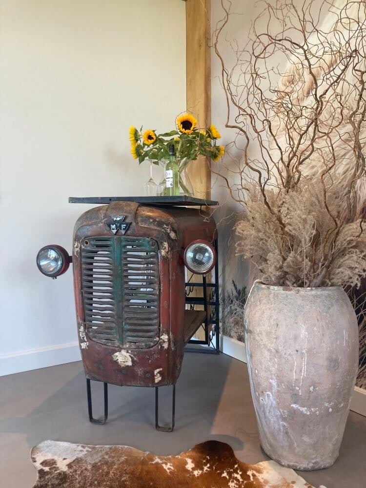 Altijd al gedroomd van je eigen tractor? Wel, nu heb je de kans om iets unieks te bezitten - een bar gemaakt van een Ferguson tractor! Deze buitengewone bar is een waar pronkstuk dat iedereen versteld zal doen staan. Deze unieke bar is met veel aandacht en vakmanschap vervaardigd en elk detail is zorgvuldig bewaard gebleven. Het interieur van de bar is zo ontworpen dat perfect is om je favoriete glazen, flessen en baraccessoires te tonen.