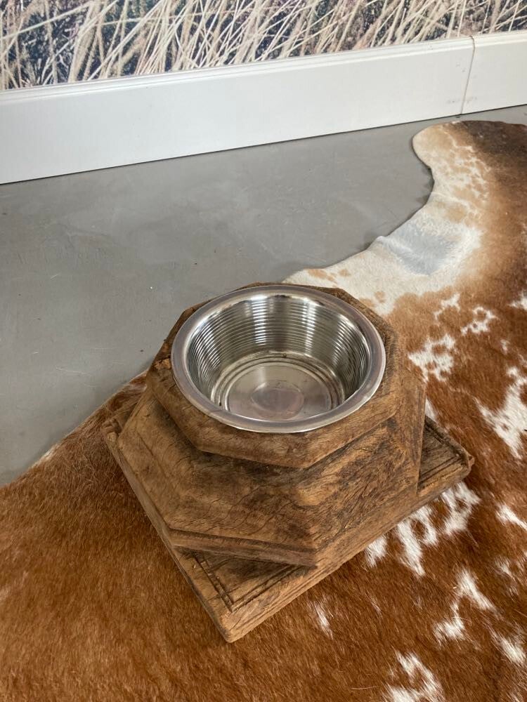 Ontdek de unieke charme van onze hondenvoerbak, gemaakt van een authentieke poer uit India! Elk stuk is met zorg vervaardigd en draagt het erfgoed van Indiase vakmanschap. De voerbak is voorzien van een duurzame metalen bak, ideaal voor het serveren van het voer van je trouwe viervoeter. Dit is een werkelijk uniek item dat zowel functionaliteit als esthetiek biedt. Voeg een vleugje exotische schoonheid toe aan de eetgewoonten van je hond met deze bijzondere hondenvoerbak, een erfstuk om te koesteren.