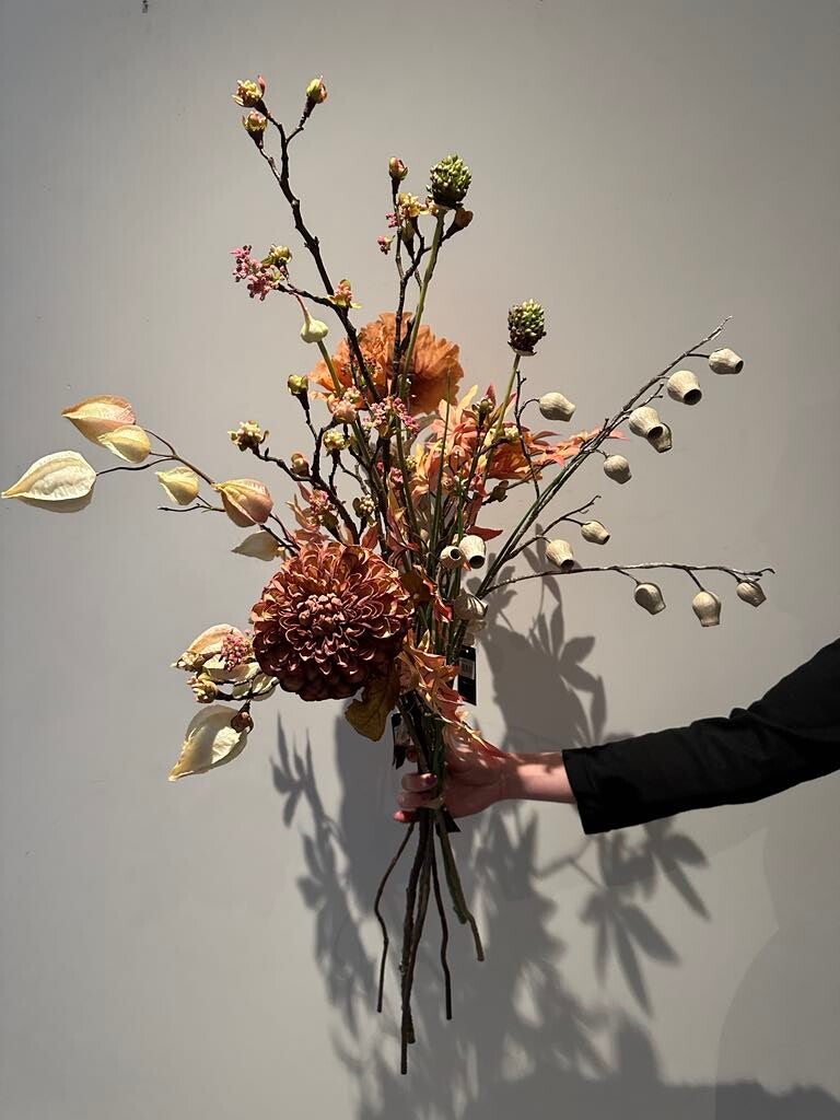 Er zijn 7 soorten zijden bloemen verwerkt in dit boeket.