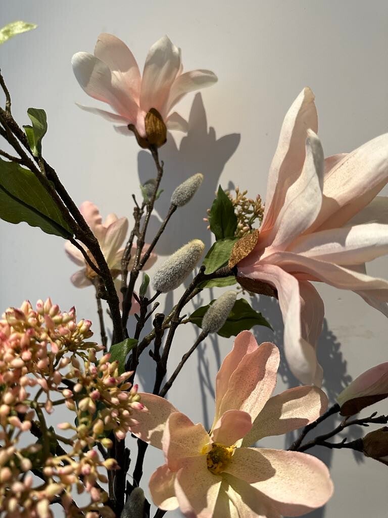 Betover je leefruimte met het Zijden Bloemen Boeket 'Zachte Bloesem', dat een prachtige mix van witte en roze tinten bevat. Laat je zorgen over verwelking achterwege, want dit tijdloze zijden boeket behoudt zijn gracieuze uitstraling, seizoen na seizoen. En het allerbeste is dat deze bloemen geen water nodig hebben ;). In onze webshop vind je divers aanbod aan zijden bloemen. Merk: Countryfield.
