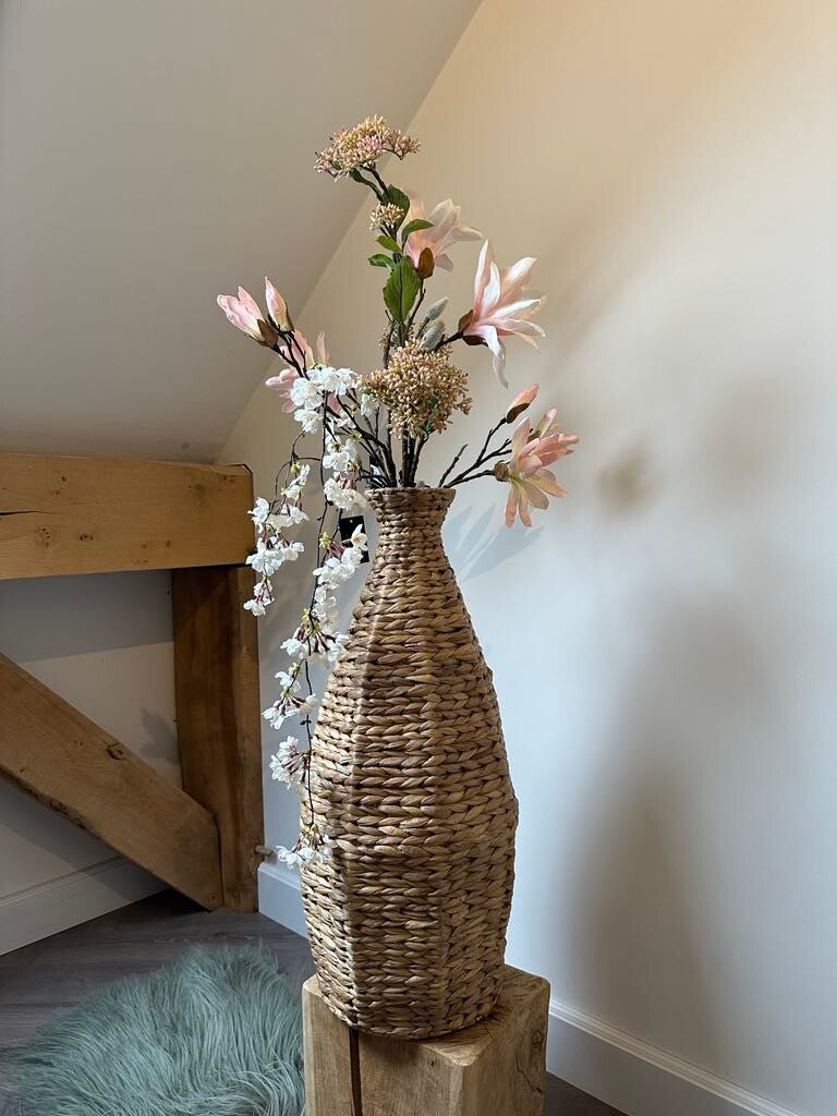 Betover je leefruimte met het Zijden Bloemen Boeket 'Zachte Bloesem', dat een prachtige combinatie van witte en roze tinten bevat. Laat je zorgen over verwelking achterwege, want dit tijdloze zijden boeket behoudt zijn gracieuze uitstraling seizoen na seizoen. Het allerbeste is dat deze bloemen geen water nodig hebben. Dit betoverende boeket wordt geleverd inclusief de rotan vaas. In onze webshop vind je divers aanbod aan zijden bloemen. Merk: Countryfield.