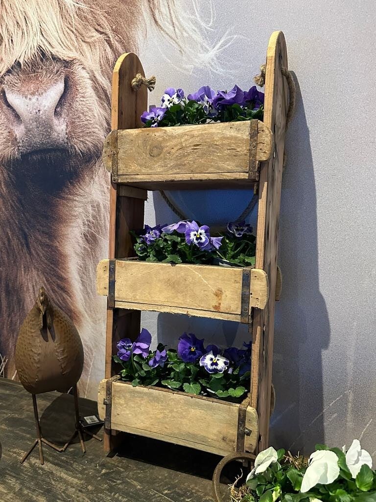 Naast onze standaard steenmal, presenteren wij dit wandrek gemaakt van 3 steenmallen in ons assortiment. Oorspronkelijk gebruikt voor het vervaardigen van bakstenen, zijn deze mallen afkomstig uit India. Elk vertoont unieke gebruikerssporen, waardoor het geleverde product mogelijk afwijkt van de afbeelding. Je kunt dit veelzijdige wandrek zowel ophangen als neerzetten, afhankelijk van jouw voorkeur en ruimte! De violen worden apart meegelevert.