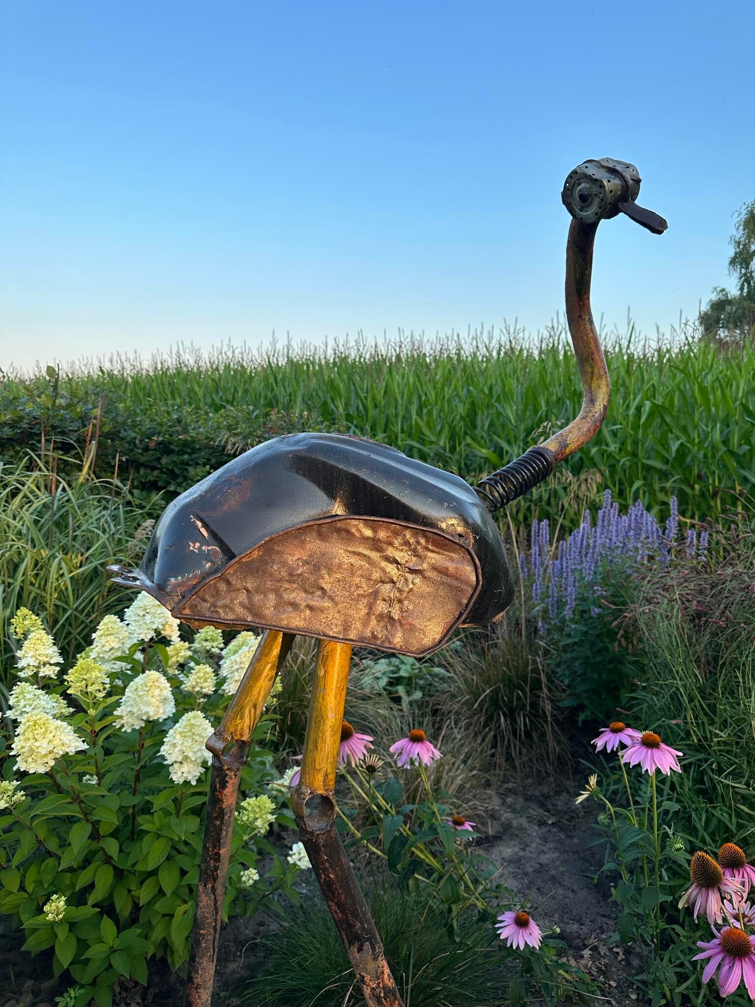 Unieke creatie: Struisvogel van gerecyclede materialen