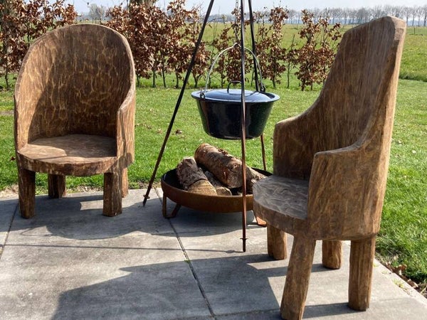 Deze houten stoelen komen uit India en ze heten ‘Naga chair’. Elke Naga chair is handgemaakt en daarom erg uniek. Je zult daarom nooit twee dezelfde exemplaren vinden. Gemaakt van zwaar materiaal en je kan er gewoon op zitten.