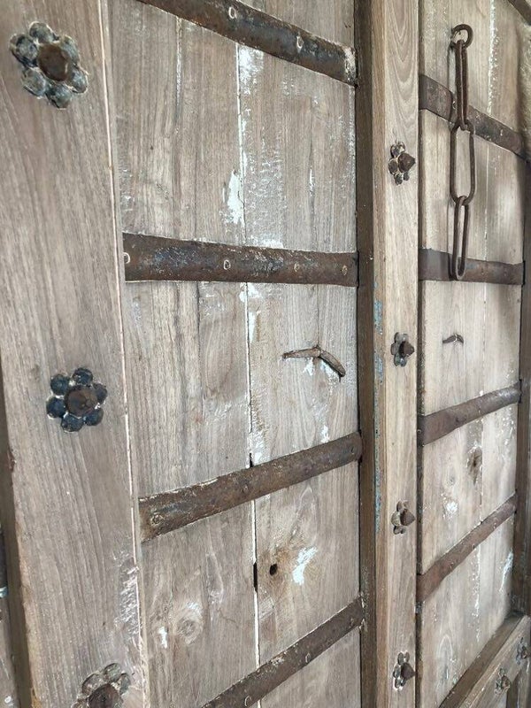 Deze authentieke deuren zijn afkomstig uit India. De deuren zijn van beide kanten erg mooi en daardoor van twee kanten te gebruiken. Deze karakteristieke deuren met metalen beslag en houtbewerking zijn uniek en absoluut een eyecatcher voor in huis of tuin.