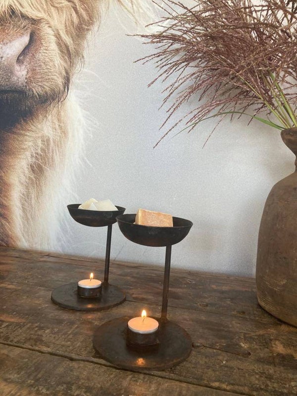 Met deze metalen geurverspreider kan je optimaal genieten van jouw favoriete amberblokje. Je kan deze brander gebruiken door een amberblokje te laten smelten. De brander hoeft maar even aan om de heerlijke geur te verspreiden. De geurverspreider is gemaakt van metaal en heeft een roestkleur. Omdat het een handgemaakt product is, kan je bestelde artikel afwijken van de foto.
