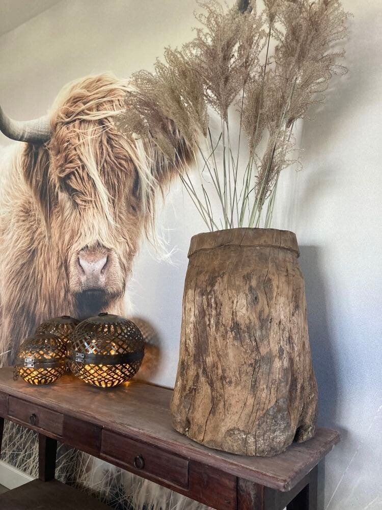 Deze houten pot komt uit India en heet ‘Naga chair’. Elke Naga chair is handgemaakt en daarom erg uniek. Je zult daarom nooit twee dezelfde exemplaren vinden. Gemaakt van zwaar materiaal en is uit één blok hout gesneden.
