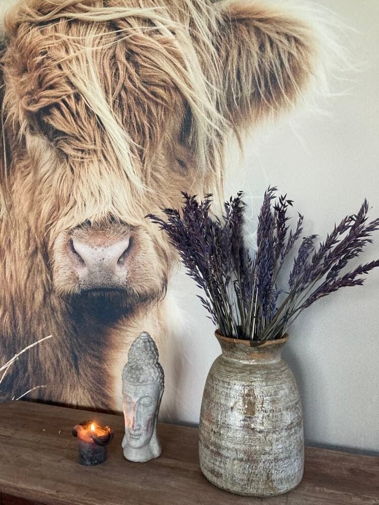 Deze pot is afkomstig uit Nepal en werd daar vroeger gebruikt als keukenpot. Omdat het al een oude pot is kunnen er scheurtjes of oneffenheden inzitten. Dat geeft juist sfeer en maakt elke pot weer uniek. Erg mooi als decoratie met droogbloemen.