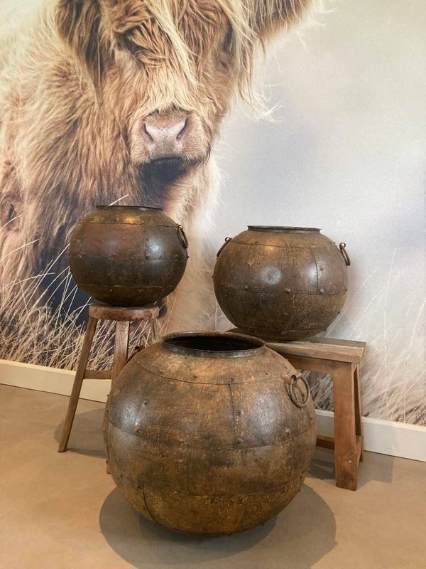 Deze stoere jongen is gemaakt van metaal en heeft een landelijke uitstraling. Absoluut een blikvanger voor bij je in de woonkamer of hal. Deze vazen zijn met de handgemaakt en zijn niet helemaal egaal. Daarom vind je ook niet twee dezelfde exemplaren. Erg leuk om te decoreren met pluimen, droogbloemen of een krans.