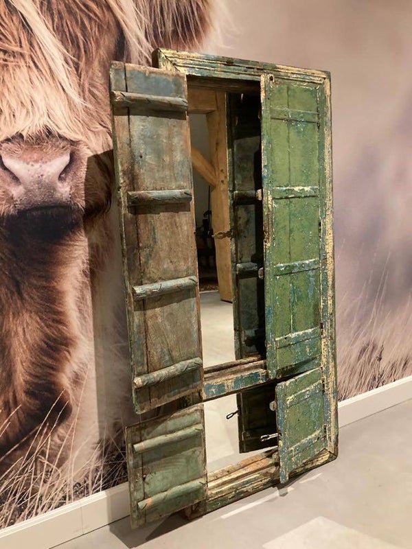 Deze authentieke deuren zijn afkomstig uit India. Zodra je de deuren openklapt, komt er een prachtige spiegel tevoorschijn.